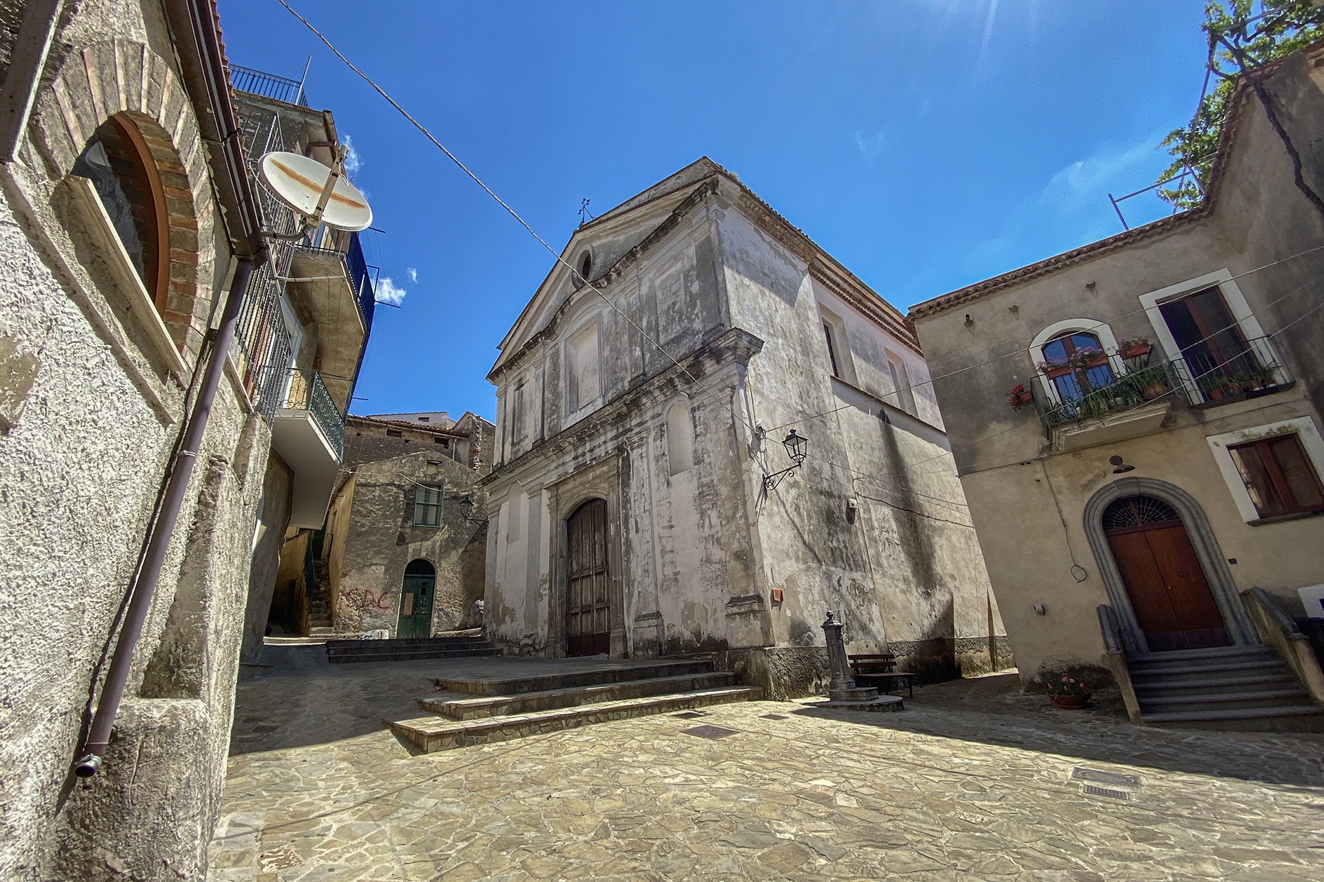 Partendo da Camerota, dalla centralissima piazza San Vito, si imbocca la vecchia mulattiera che porta al bellissimo “Tulo” (nome tipico della vecchia fontana) con i suoi lavatoi e le sue due sorgenti. Raggiunto e attraversato il Canale (parte bassa del paese) sul ponte medioevale, si sale al paese di Lentiscosa attraverso l’antichissima mulattiera. Questo è il passaggio che tocca l’animo e tutte le sue sfumature, un momento di assoluta alienazione dal mondo circostante. Visitato il paese con la sua bellissima cappella affrescata con dipinti del XV secolo, si raggiunge Marina di Camerota attraverso il sentiero delle 12 chiese. Le grotte preistoriche, tra le più importanti d'Europa, fanno da assoluta attrazione per turisti e residenti. Il percorso ufficiale è così strutturato: Madonna di Piedigrotta, Sant'Antonio, Santa Rosalia, Santa Maria in Martiris, Santa Sofia, San Giovannello, San Vito, Carmine, San Nicola, Santa Maria, San Gennaro, San Daniele, San Biagio. (da Cammino Cilento)